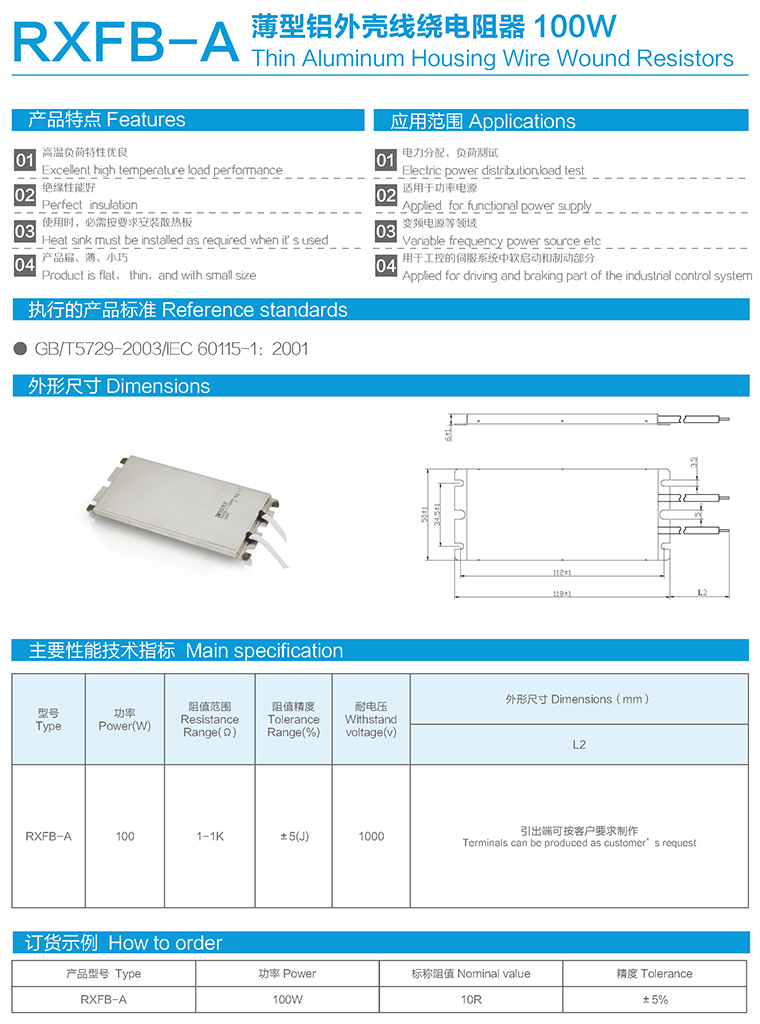 RXFB-A薄型铝外壳线绕电阻器