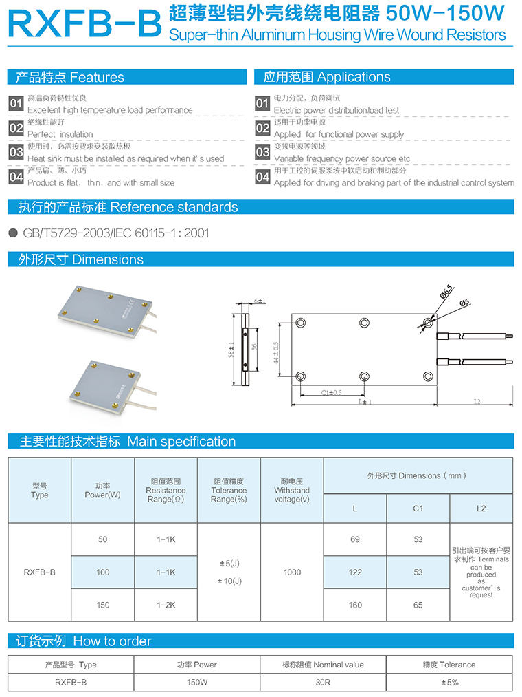 RXFB-B超薄型铝外壳线绕电阻器